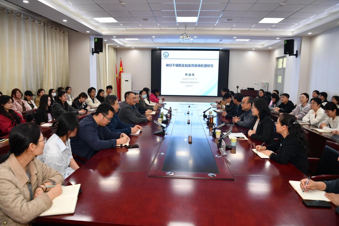 报告中,焦建伟研究员围绕神经干细胞调控机制、脑发育过程分子机理及相关疾病致病通路展开深入阐释。他结合团队多年研究成果,系统解析神经干细胞增殖分化、神经发生关键环节,剖析脑发育疾病潜在致病靶点,为疾病早期诊断与靶向治疗提供理论新思路。其讲解兼具学术深度与前沿视野,引发在场师生强烈共鸣。