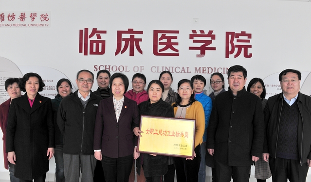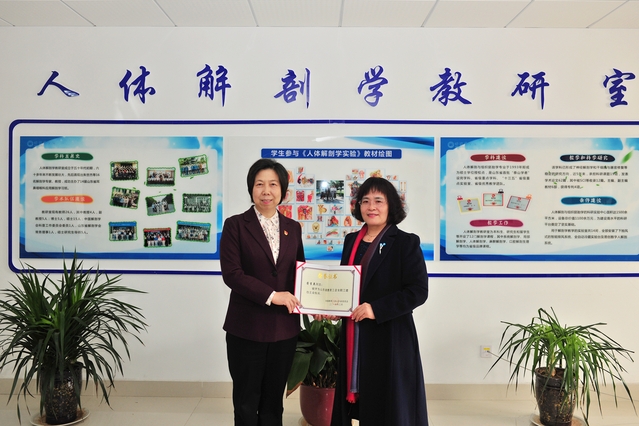 我院解剖学教研室主任蒋吉英教授荣获中国教育工会山东省委员会颁发的“山东省教育工会女职工建功立业标兵”荣誉称号,病原生物学教研室喜获潍坊市总工会颁发的“女职工建功立业标兵岗”奖章。