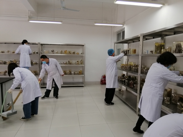 实验室及时与相关教研室沟通,根据教学进度确定实验教学项目,联系实验动物、药品和耗材的供应,保证充分满足教学需要。教学切片和大体标本是形态学实验教学的重要资源之一,为管理和维护好实验教学资源,高质量完成复学复课,实验室全体老师对教学切片进行了分类整理,对标本室和生命馆的病理学、组织胚胎学及人体寄生虫学标本进行了全面整理和维护。