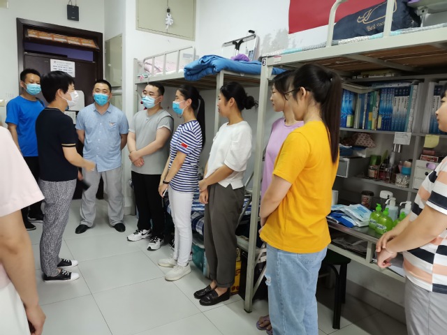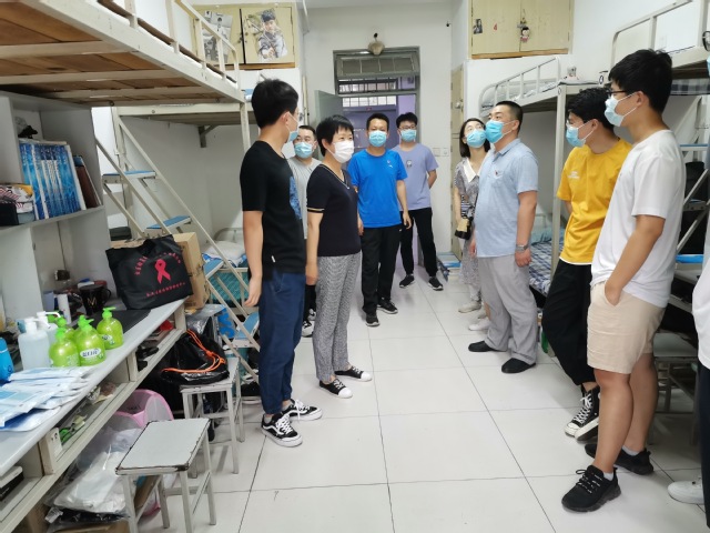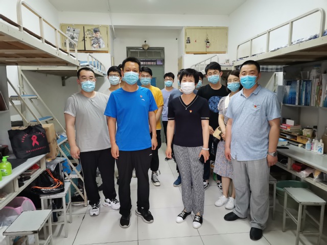 疫情防控期间为了更好关心服务学生,形态机能实验室党支部支委三人与年级辅导员一行5人6月9日深入宿舍看望并慰问了临床医学专业2017级9班返校学生,为同学们送上爱心口罩、抑菌洗手液、消毒液等防疫物资及学习用品等。