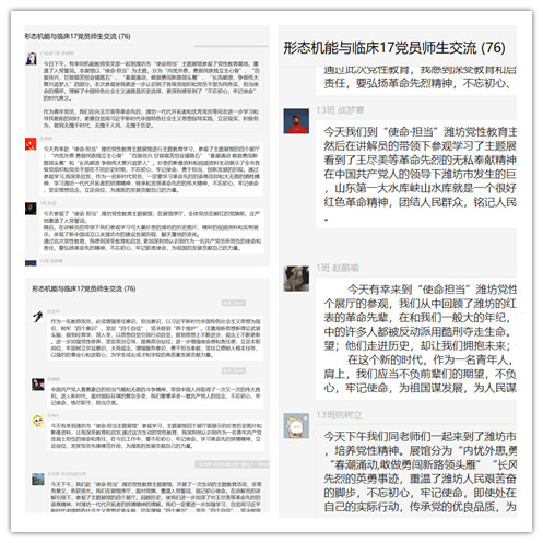 通过参观学习,全体党员深受教育和启发,参观结束后,大家在“形态机能与临床17党员师生交流群”里进行了交流讨论,师生党员踊跃发言,分享了自己的体会感悟,纷纷表示,作为一名新时代党员,一定要深入学习革命先烈舍生忘死的大无畏精神,学习一代代开拓者的拼搏精神,不忘初心,牢记使命,坚定理想信念,勇于担当作为,在平凡的岗位上践行初心,在坚定的誓言中创一流业绩。
