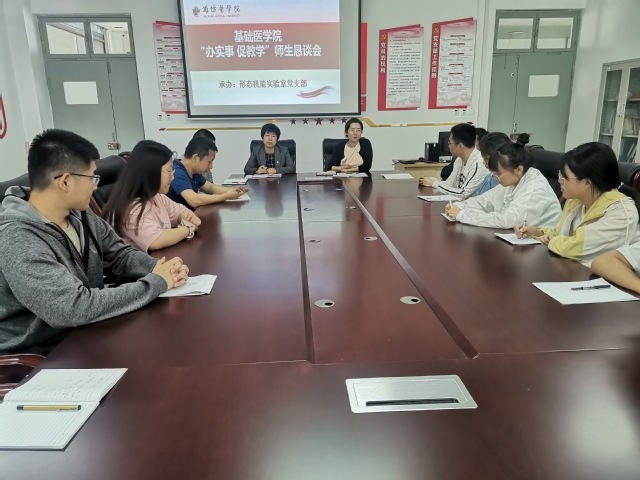 在深入开展党史学习教育之际,为更好地落实立德树人根本任务,提高实验教学质量和实验室建设管理水平,形态机能实验室党支部于5月18日召开了师生恳谈会,党支部书记吴洪娟主持会议,基础医学院党委书记楚新艳到会指导。