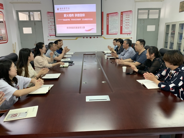 5月27日,形态机能实验室党支部“学党史 见行动”红色课堂系列活动又迎来新的一课,“听老党员讲故事”红色课堂正式开讲。以“薪火相传 承续信仰”为主题,老中青三代师生党员齐聚一堂,追忆峥嵘岁月,共话初心使命。会议由吴洪娟主持,基础医学院党委书记楚新艳到会指导。