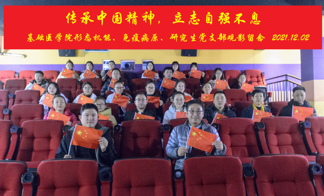 为加强爱国主义教育,强化爱国主义情怀,丰富党史学习教育的内容与形式,形态机能实验室党支部与免疫病原支部、研究生支部于12月2日开展“传承中国精神、立志自强不息”观影活动,在汇金电影城集体观看了电影《我和我的父辈》。