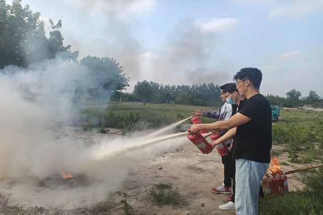 保卫处邱鹏、刘汉亮两位老师向同学们详细讲解了灭火器的种类、用途和注意事项,深入分析了校园火灾致灾因素,普及了自救逃生知识,帮助研究生强化安全意识、筑牢安全防线。现场学生进行了灭火器的实用演练。